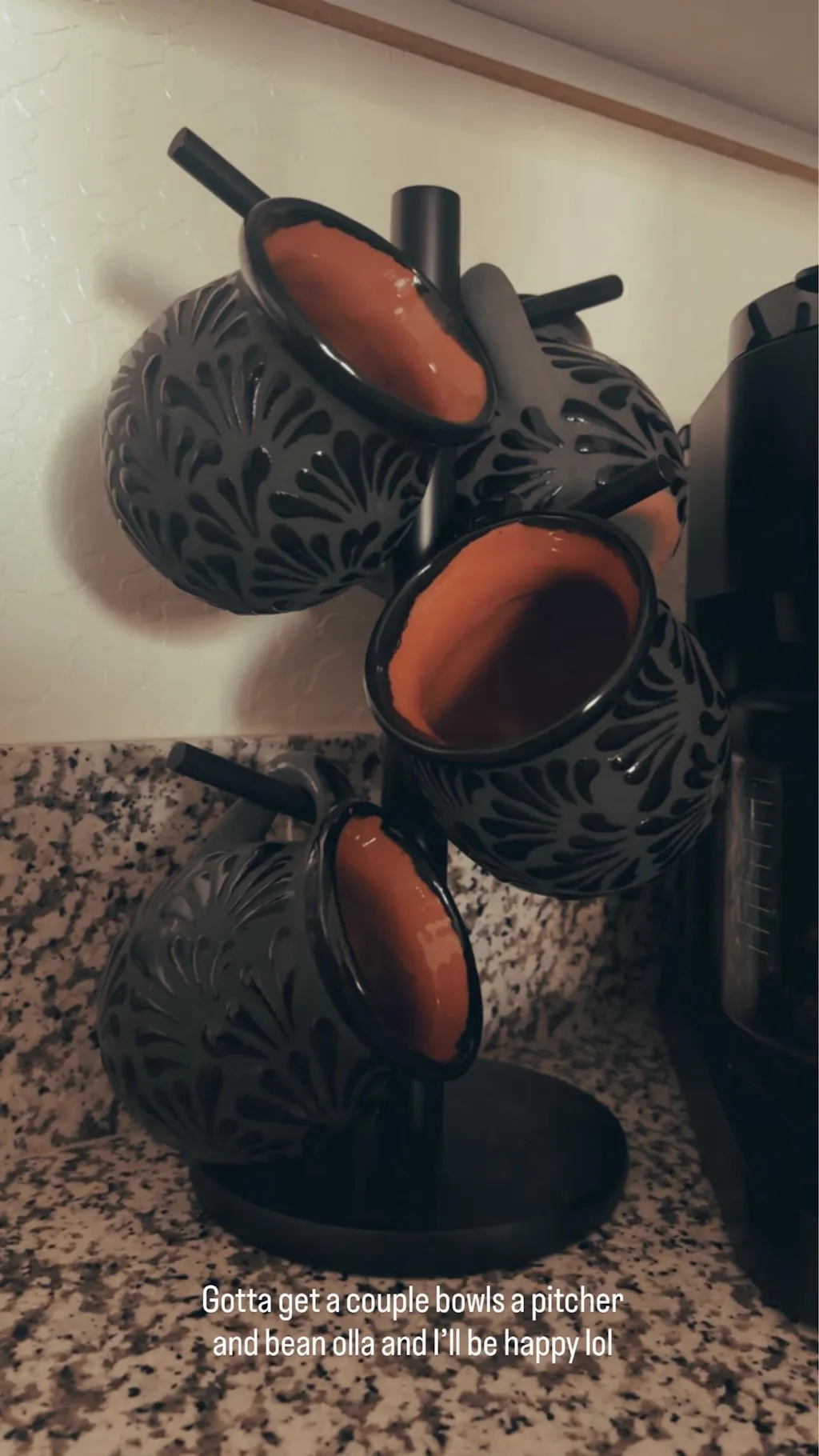 Traditional jarrito shape with a rounded body, curved handle, and detailed floral carvings. Finished in a rich black glaze for an elegant, minimal look.