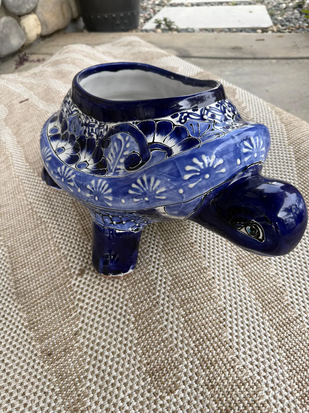 Add a splash of personality to your garden or patio with this Talavera Turtle Planter. Designed by The Talavera Hub and handcrafted at our family partner workshop in Guanajuato, Mexico. This piece is hand-painted and kiln-fired with a lead-free glaze.