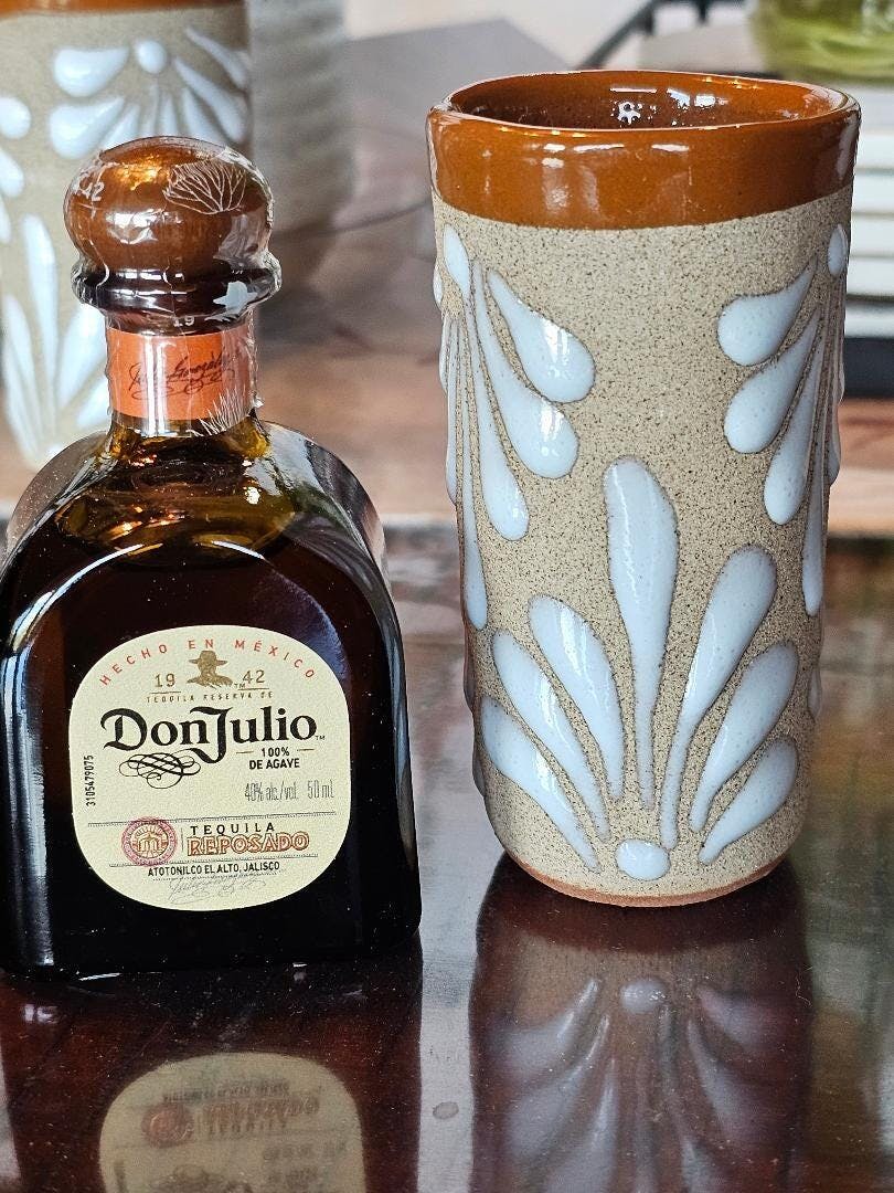 STYLE: This rustic Talavera shot glass features a natural textured finish with bold, hand-painted white floral designs. Designed by The Talavera Hub and handcrafted at our family partner workshop in Guanajuato, Mexico. This piece is hand-blown from lead-free glass. Each piece reflects the traditional charm of artisan Mexican pottery.