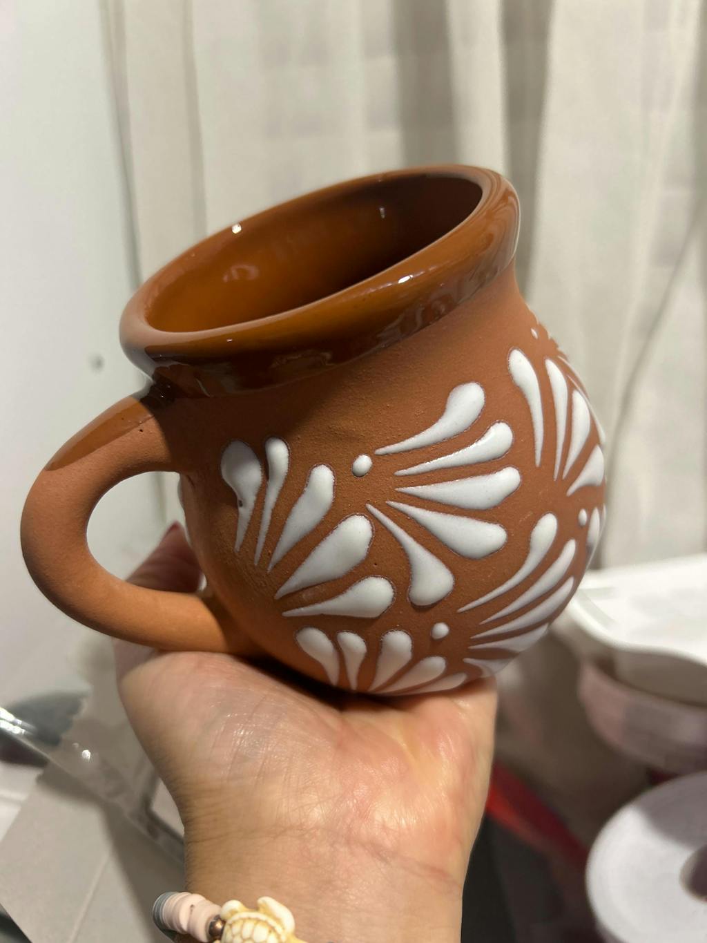 Bring tradition to your table with this Mexican Clay Jarrito Mug. Designed by The Talavera Hub and crafted by hand at our family partner workshop in Guanajuato, Mexico. This piece is hand-painted and kiln-fired with a lead-free glaze.