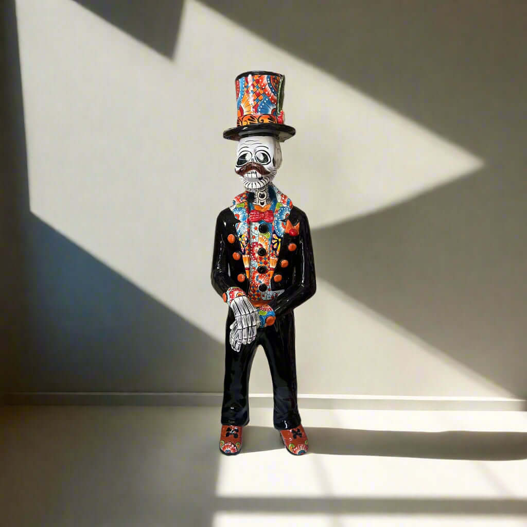 Inspired by the iconic Day of the Dead tradition, this Catrin statue features intricate Talavera designs and bold, vibrant colors.