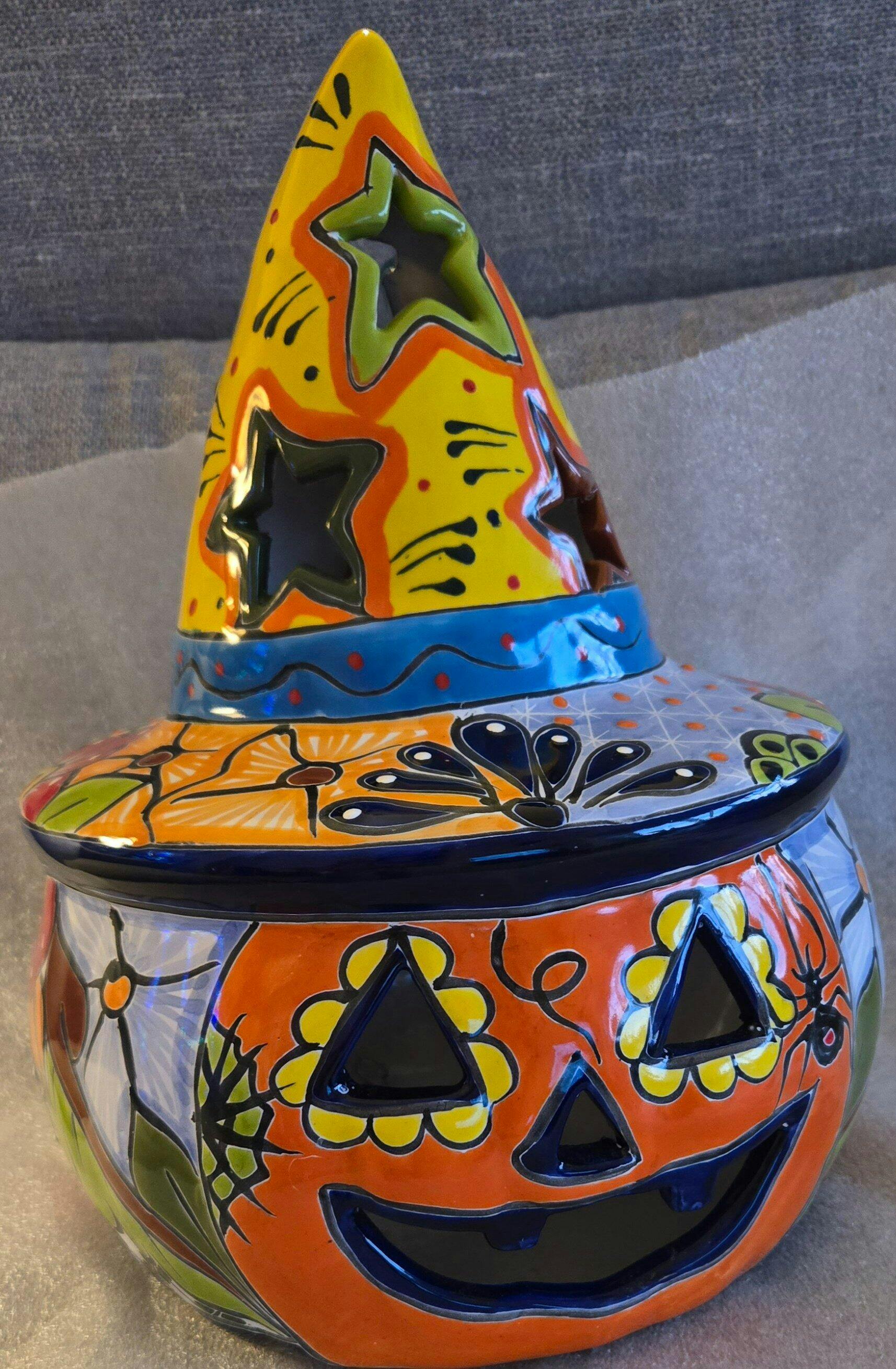 Talavera Jack-o'-Lantern | Mexican Pumpkin with Witches Hat