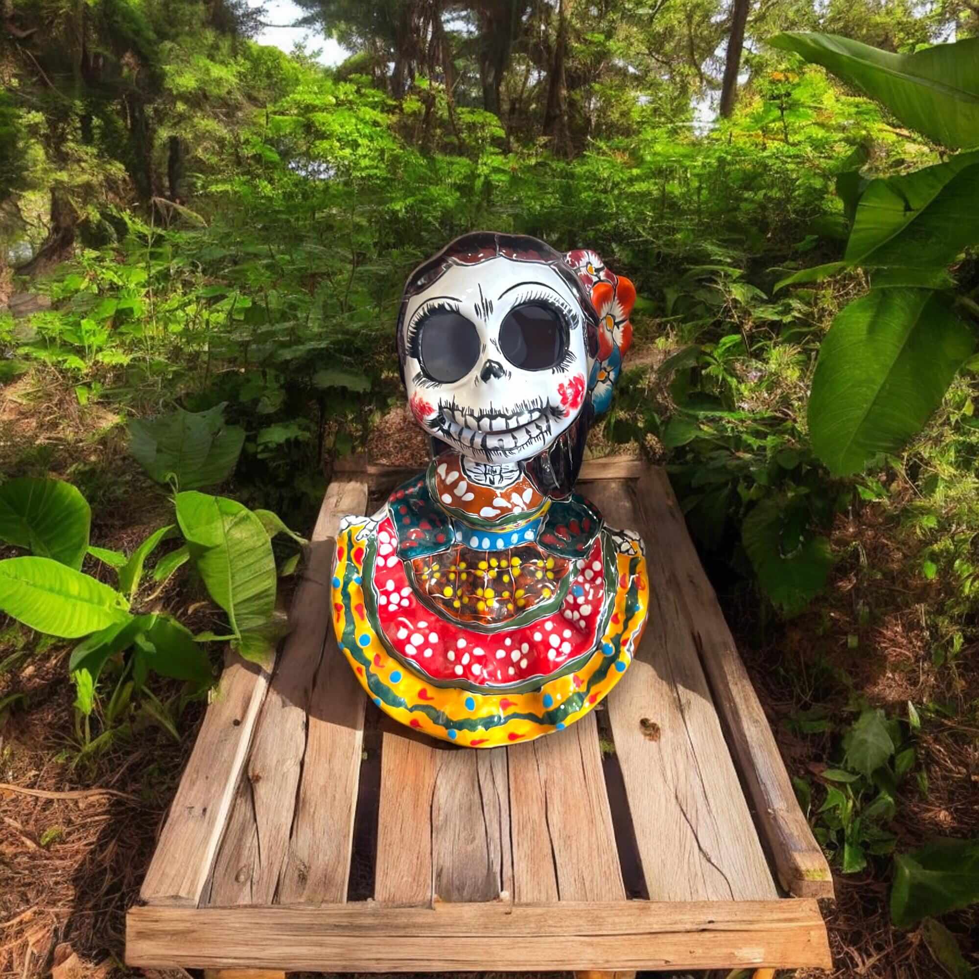 This stunning Talavera Skeleton Woman Statue is handcrafted by talented Mexican artisans. Designed by The Talavera Hub and handcrafted by our family partner workshop in Guanajuato, Mexico, this vibrant Talavera Skeleton Woman Statue is hand-painted and kiln-fired with a lead-free glaze. Brighten your space with this colorful piece that celebrates the spirit of Day of the Dead! A colorful and vibrant piece, perfect for celebrating the spirit of Day of the Dead!