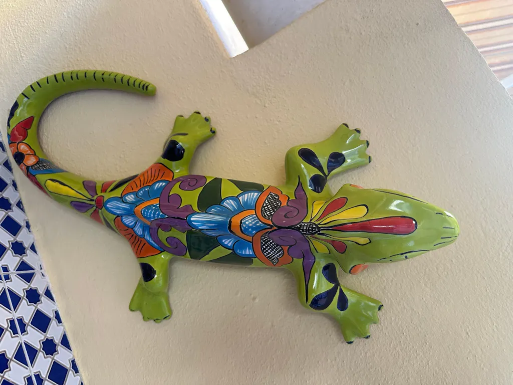 Make a bold statement with this XL Talavera Iguana Statue—an eye-catching piece of authentic Mexican folk art. Designed by The Talavera Hub and handmade by our family partner workshop in Guanajuato, Mexico. This piece is hand-painted and kiln-fired with a lead-free glaze. Hand-painted in vibrant Talavera patterns, this ceramic iguana brings life and color to patios, garden walls, or indoor décor. Its playful expression and detailed craftsmanship make it a standout addition to any collection.